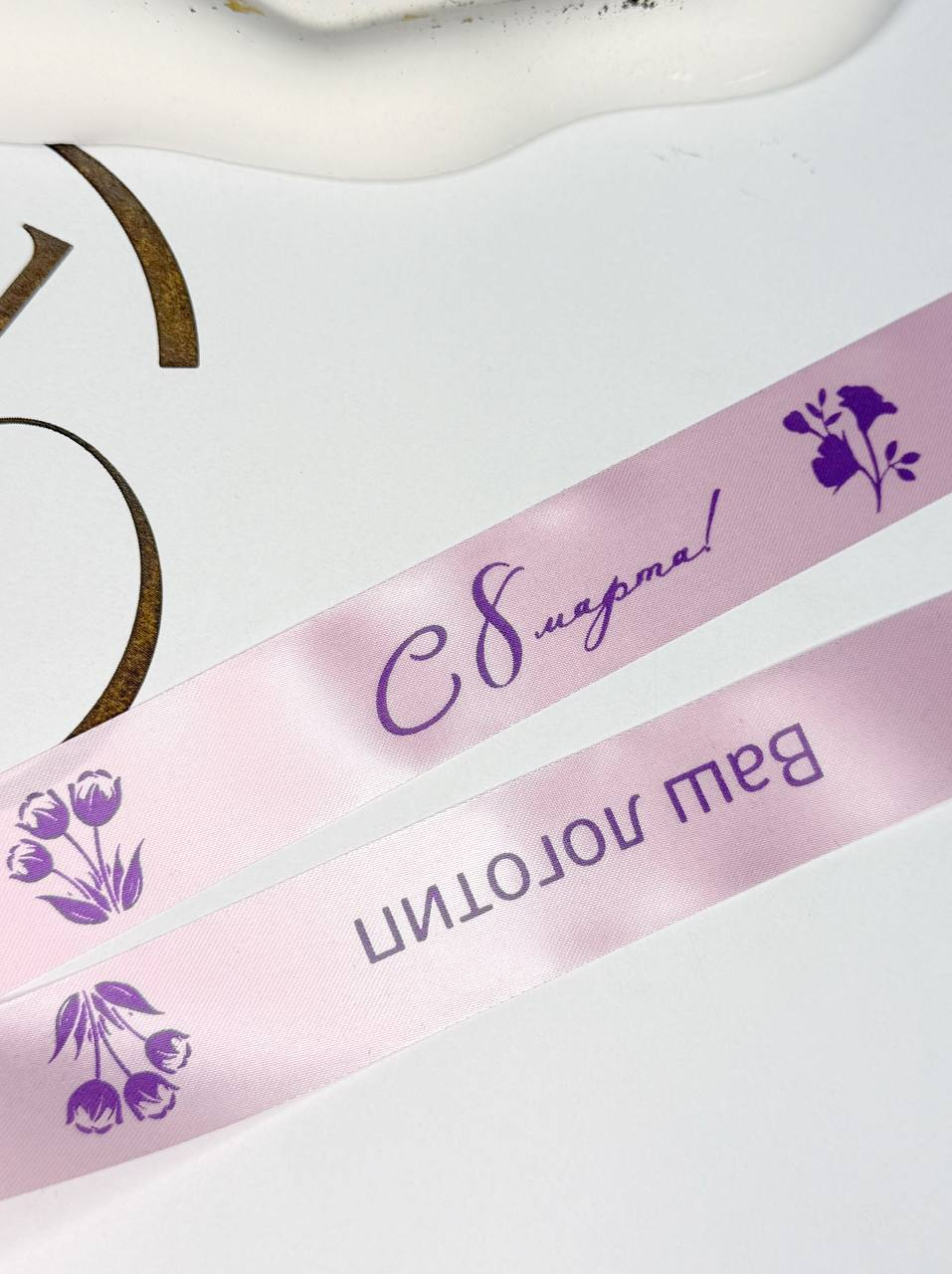 Индивидуальная брендированная сатиновая лента для вашей продукции с тематикой праздника - День мамы, Новый год, день рождения, 8 марта и тд., цвет печати - на выбор. Ширина ленты 20мм.