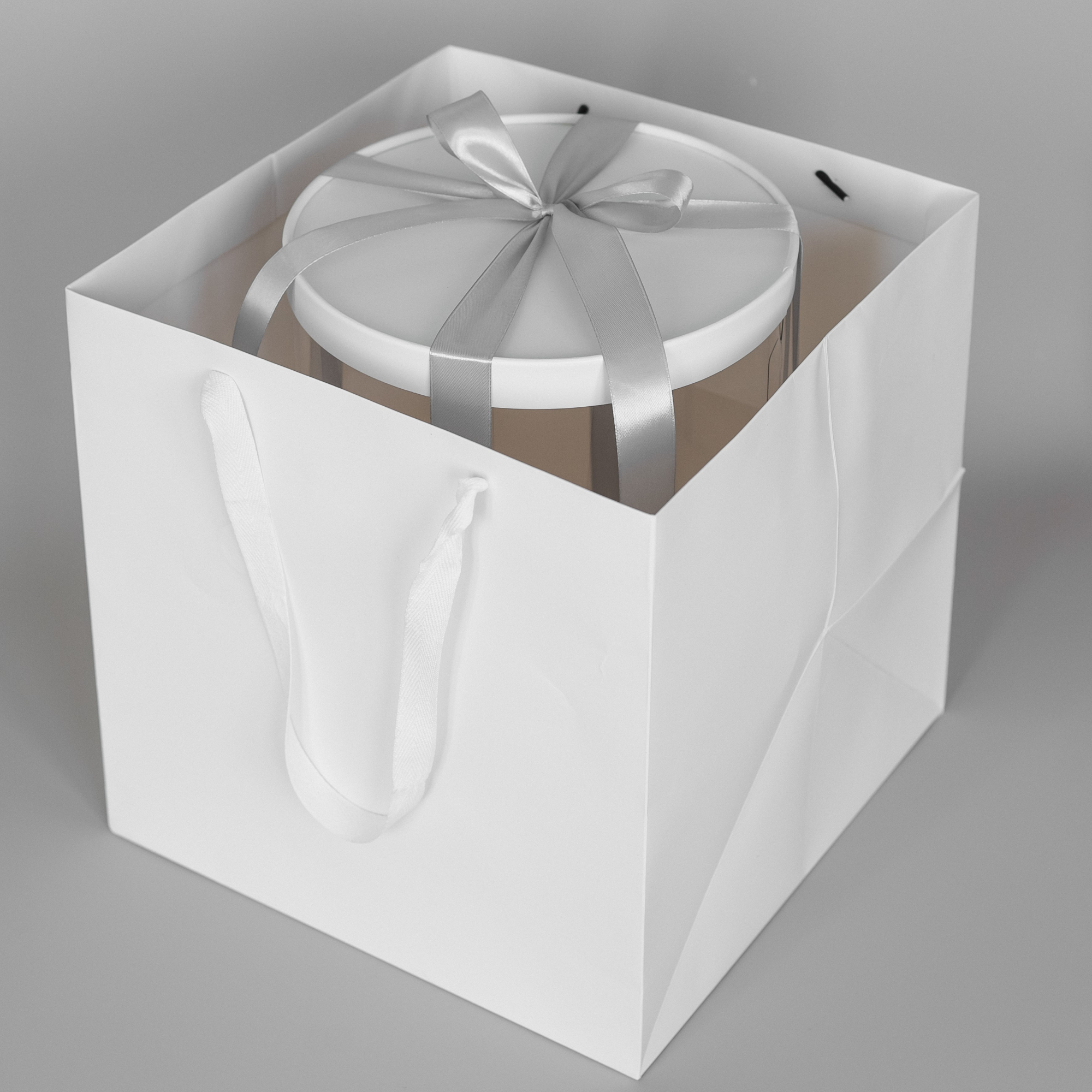 Коробка-цилиндр для торта D-26см и высотой 24см (-1.5см основание) в двусторонней защитной пленке. Материал - ПЭТ. Лента к коробке не прилагается.