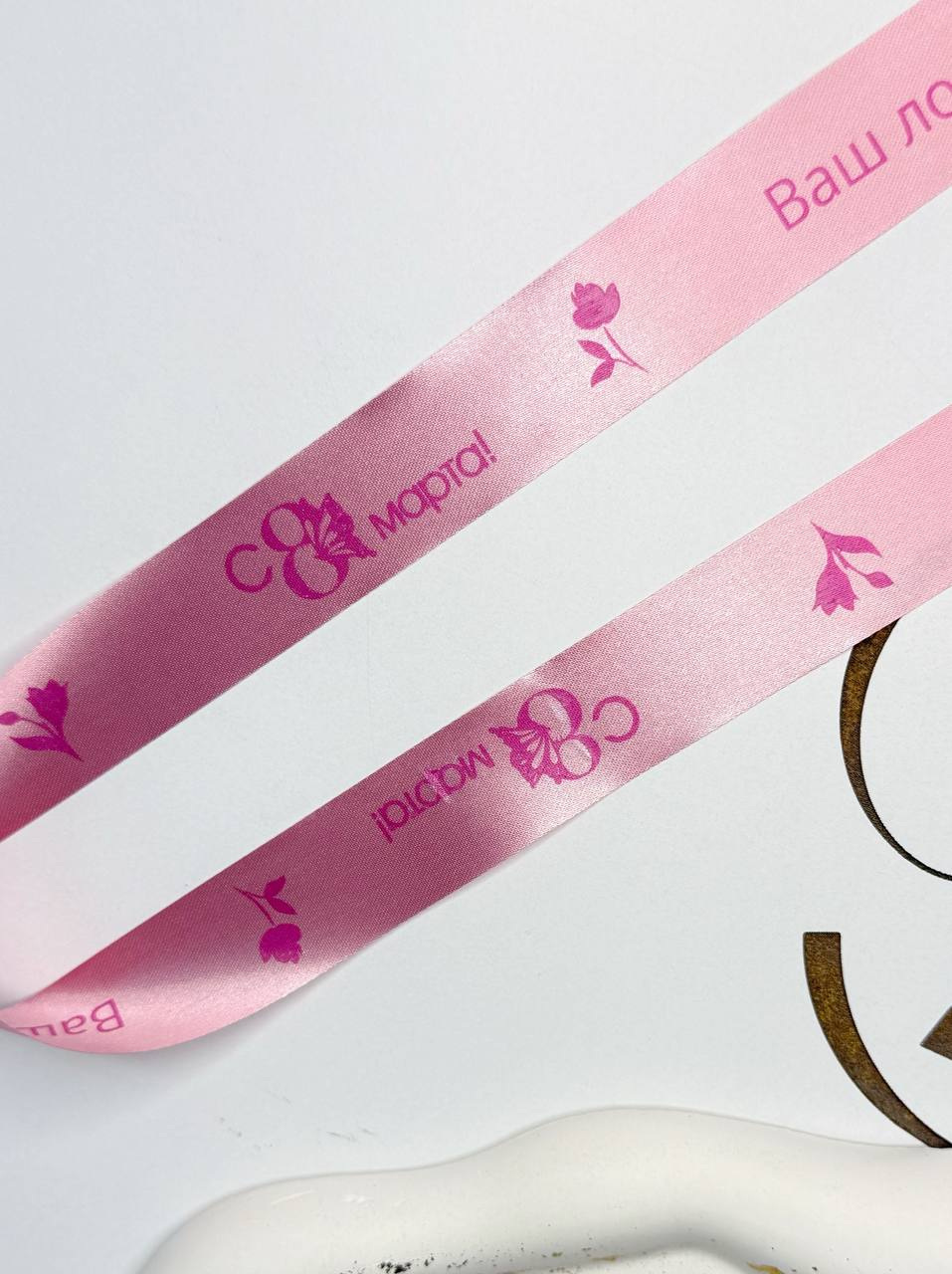 Индивидуальная брендированная сатиновая лента для вашей продукции с тематикой праздника - День мамы, Новый год, день рождения, 8 марта и тд., цвет печати - на выбор. Ширина ленты 20мм.