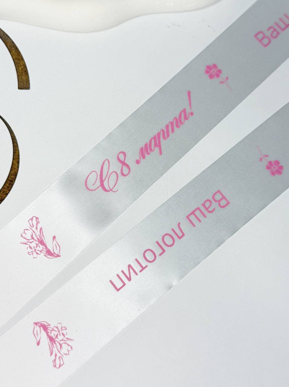 Индивидуальная брендированная сатиновая лента для вашей продукции с тематикой праздника - День мамы, Новый год, день рождения, 8 марта и тд., цвет печати - на выбор. Ширина ленты 30мм.